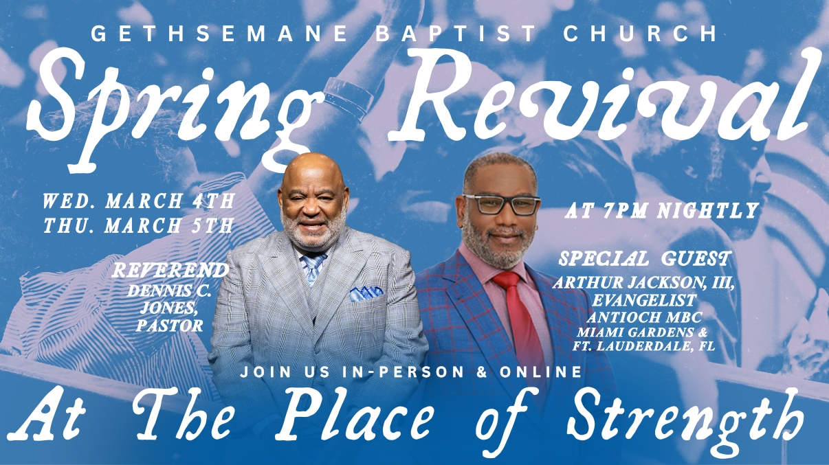 Pastor Dennis Carl Jones, a native of Shreveport, Louisiana, answered his call to ministry in 1978 and has faithfully served in pastoral leadership for decades. After shepherding several churches in Louisiana, he became the 5th Pastor of Gethsemane Missionary Baptist Church in 1998. Under his leadership, the church has experienced significant spiritual and financial growth, expanded its facilities, eliminated debt early, and strengthened outreach efforts to serve both the church and surrounding community.
